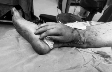 Các bác sĩ Bệnh viện Đa khoa Bình Dương ghép tạm bàn tay bị đứt lìa của một phụ nữ mang song thai 23 tuần vào cẳng chân, nhằm bảo tồn bộ phận này trong lúc chờ phẫu thuật nối lại.