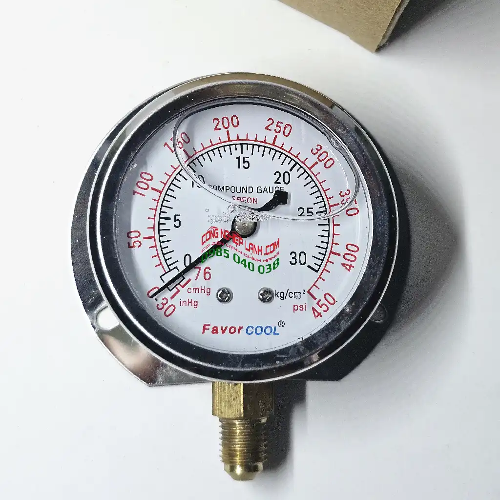 Đồng hồ áp suất cao FavorCOOL 500-GFJ được sử dụng để theo dõi áp suất trên đường ống sử dụng môi chất R22, R134A, R404A, R407C.